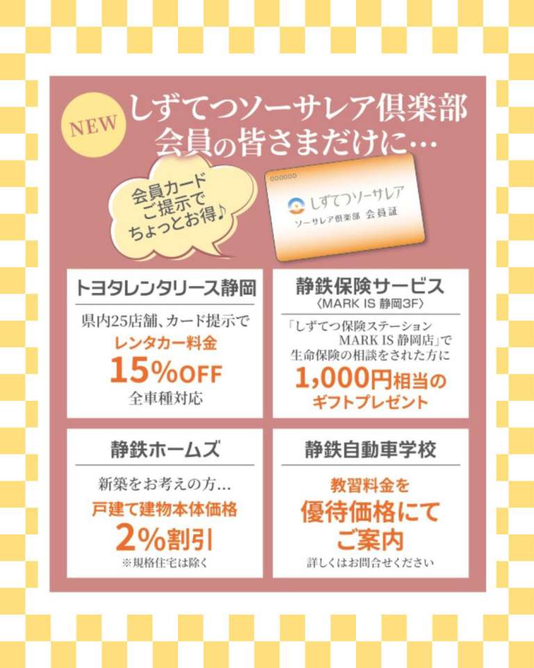 いずれもソーサレア倶楽部会員カードの提示が必要です。