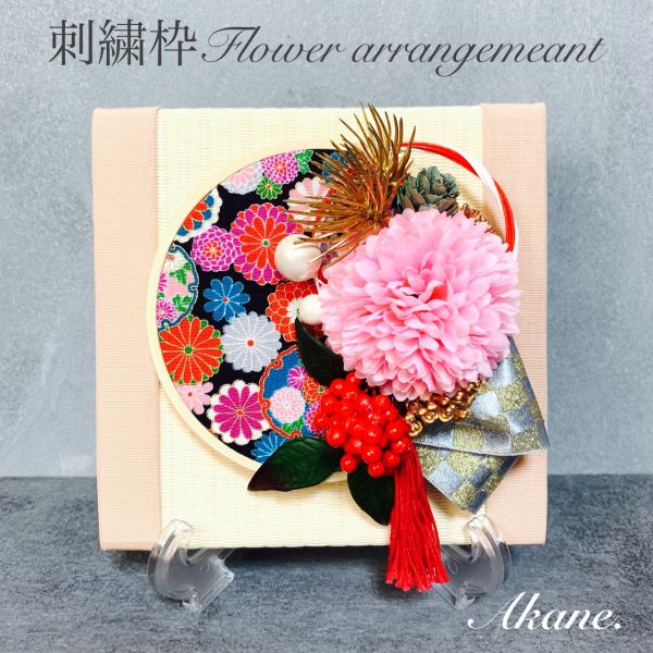 刺繍枠を貼ったミニ畳に、お好きな色のアーティシャルフラワー